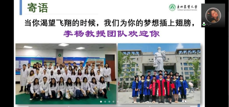 本次宣讲从平台简介、所在团队简介、学生培养和团建时光四方面展开。宣讲会中,郝嘉琪着重介绍了其所在团队师资力量、科研环境及研究成果。在学生培养方面,介绍了团队内优秀硕士、博士代表以及东北农业大学食品学院就业和升学情况。郝嘉琪表示,考研同学应根据自身情况选择合适院校,欢迎同学们报考东北农业大学。