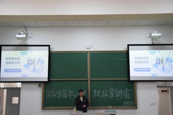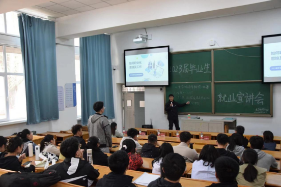 首先,赵临强总经理从企业文化、发展历程、人才发展、福利待遇等方面向同学们做了详细地介绍。接着,赵总结合工作实例着重分析了如何形成职业化思维。他强调,人生是一场消除模糊的比赛,即将毕业学生要注重提高沟通交流能力,与优秀的人为伍,不断学习,要有清晰的职业判断与职业规划,要深入培养职业化思维,要不断提升职业能力。随后,学生们与赵临强总经理进行了互动,交流企业文化、应聘要求、职业发展、晋升渠道等,学生们纷纷表示受益匪浅。