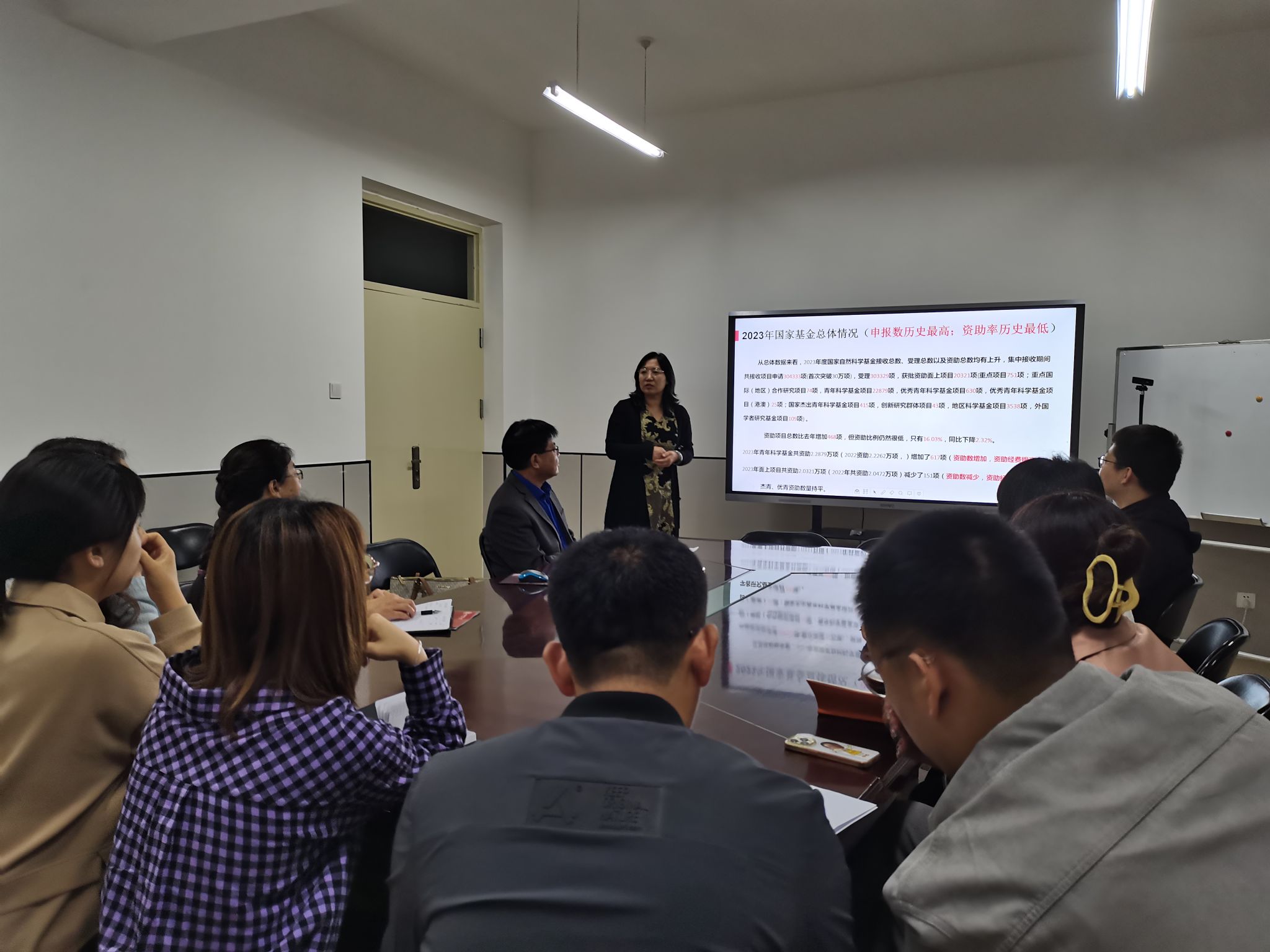 徐建国院长作动员讲话,要求全体教职工高度重视基金申报工作,提前谋划、精心准备,学院将全方位支持各位教师的基金申报工作,争取在2024年国家自然基金项目申报、立项上取得新的突破。