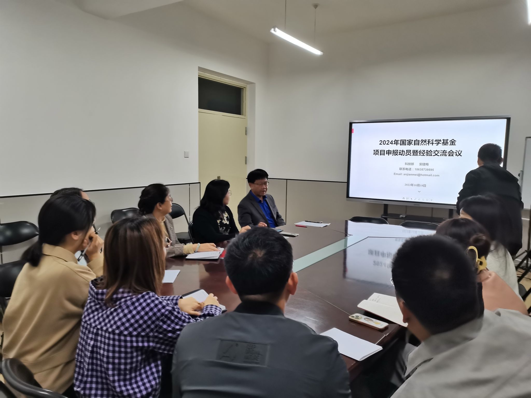 10月18日晚上6时30分,明升MS88体育登录以线下的方式组织召开了2024年国家自然科学基金申报动员会,会议由徐建国院长主持,科技部安建梅部长、学院张秀红副院长、拟申报基金的教师参加了会议。