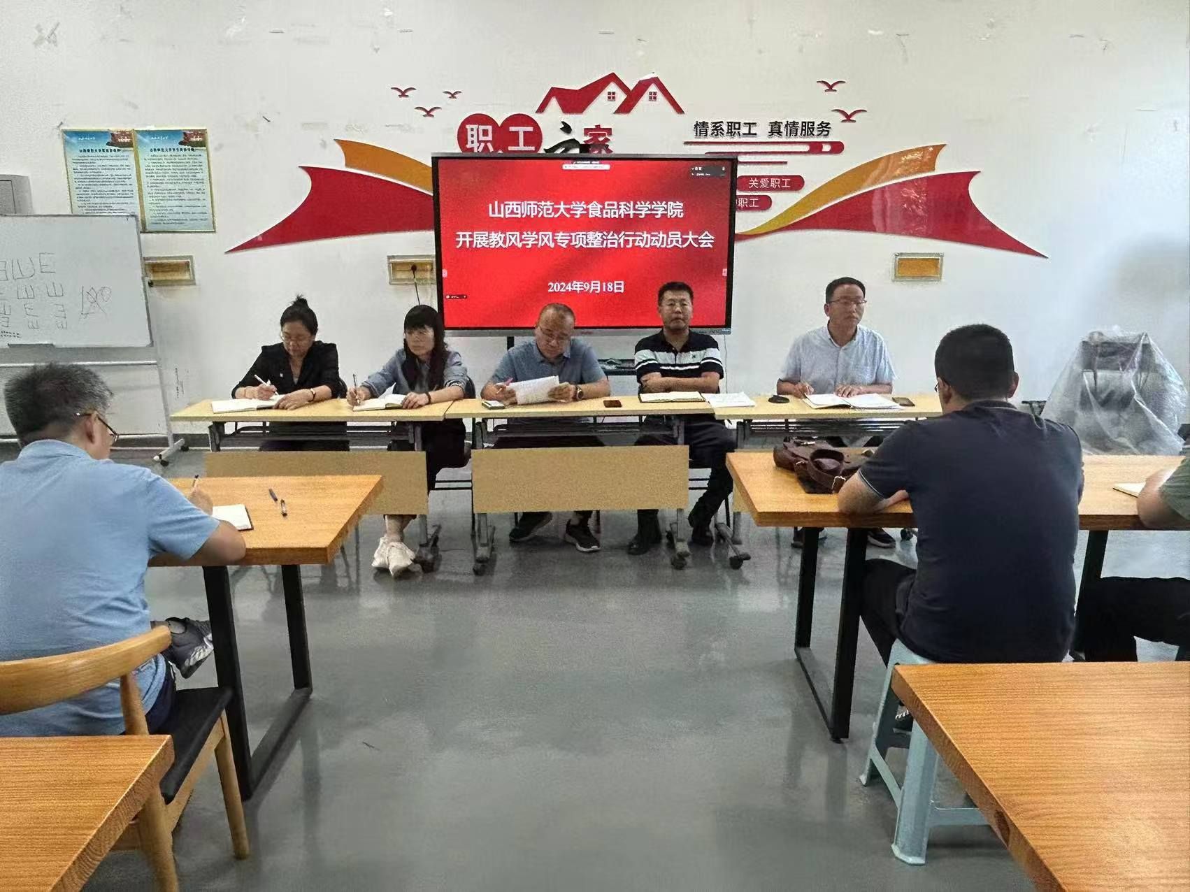 首先,副院长(挂职)郑亚军与大家认真学习了《关于开展教风学风专项整治行动的通知》(党办发[2024]28号)的文件精神,着重介绍了此次教风学风专项整治活动的重要性、必要性和紧迫性;通知了学校各级督查工作组的督查安排;强调全体教职工要高度重视,认真安排教学,精心准备教学内容,以学生为中心,严格按照大纲上课,注重体现学科前沿与教学内容相结合,积极有效地管理课堂,关心学生。同时,所有教师认真学习《山西师范大学教学差错、教学事故认定处理办法》,明确违纪的危害与严重后果。此外, 学院的学工组和团委积极配合,辅导员将召开主题班会,带领学生认真再学习《山西师范大学学生学籍管理规定》和《山西师范大学学生违纪处理办法》。