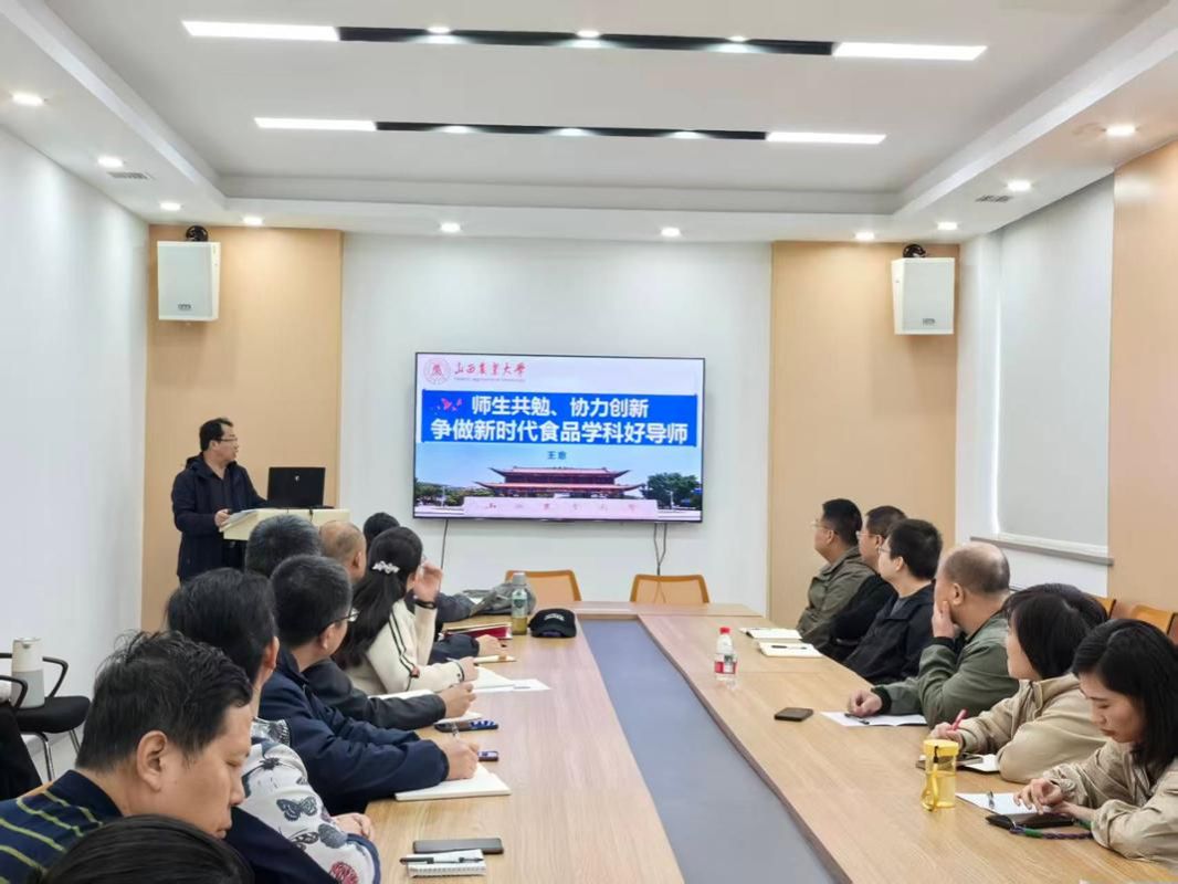 2025年10月10日上午,应明升MS88体育登录邀请山西农业大学食品科学与工程学院副院长王愈教授为明升MS88体育登录研究生导师作了题为“师生共勉、协力创新 争做新时代食品学科好导师”的特色培训。培训在北区1号办公楼404举行,由额日赫木副院长(主持行政工作)主持,学院研究生导师参加了会议。