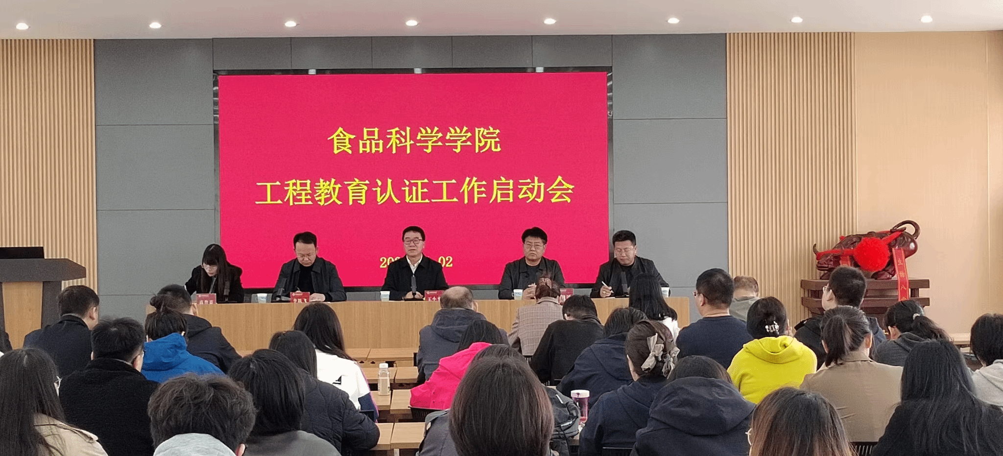 为深入贯彻落实新时代高等教育高质量发展要求,按照学校关于加快推进工程教育认证工作的统一部署,扎实推进食品科学与工程类专业工程教育认证工作,全面提升人才培养质量和专业建设水平,4月2日上午,在北区一号办公楼403会议室隆重召开工程教育认证工作启动会。副校长王小平,教务部部长徐建国,教育质量评估与发展中心主任李跃飞出席会议,学院领导班子成员及全体教职工参会。会议由学院党委副书记高誉嘉主持。